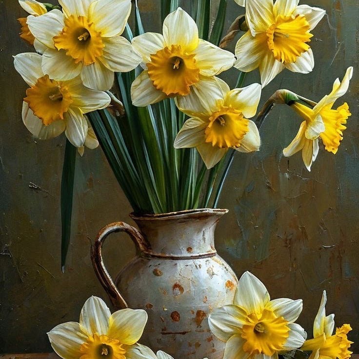 I’m a pastel-color kind of girl and I’m dreaming of the multicolored greens dotting the landscape as the tiny, new leaves burst forth. In my mind, I’m visualizing the soft-colored bobbing heads of tulips, hyacinths, and of course, the sunshiny daffodils. Surely that's all just around the corner on this mid-March day in Eastern PA.💐